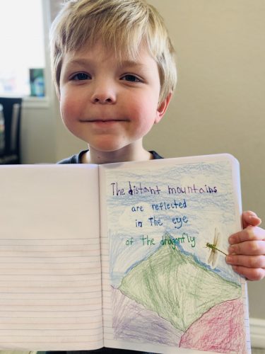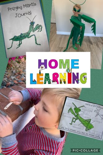 Jefferson’s kindergarten class was going to study bugs upon returning from spring break. When it was announced they would not be going back, he had a big idea to learn about insects and report on the praying mantis egg case I had purchased for in home learning. We created a fb page to report live Monday through Friday about insects and give an update about his egg case. We had also purchased an egg case for each of the kindergarten classes to donate. He released Mrs. Fox’s praying mantis nymphs back to nature and we offered porch pick up to local learners who wanted a nymph. The channel 12 news heard of his report and even did a story on it! Finally, his egg case hatched! We was so excited! He released most, offered porch pick up for a few and kept two. He continued to report on insects and care for the nymphs. He created a science journal and wrote about insects, drew pictures and kept updates on the stage of the praying mantids. He wanted to share his excitement of learning with others and not miss out on this exciting bug unit despite school being closed.